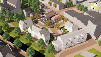 De tweede presentatie ging over het Bleekveld, en wel dat deel dat nu nog als parkeerterrein in gebruik is. In het oorspronkelijke plan zou daar een nogal hoge appartemententoren verrijzen met ongeveer vijftig appartementen. Dit onzalige plan is gelukkig verlaten. Er komen nu twaalf grondgebonden woningen en een maximaal ongeveer vijftien meter hoog appartementen-complex met zestien appartementen, beide in het duurdere segment.